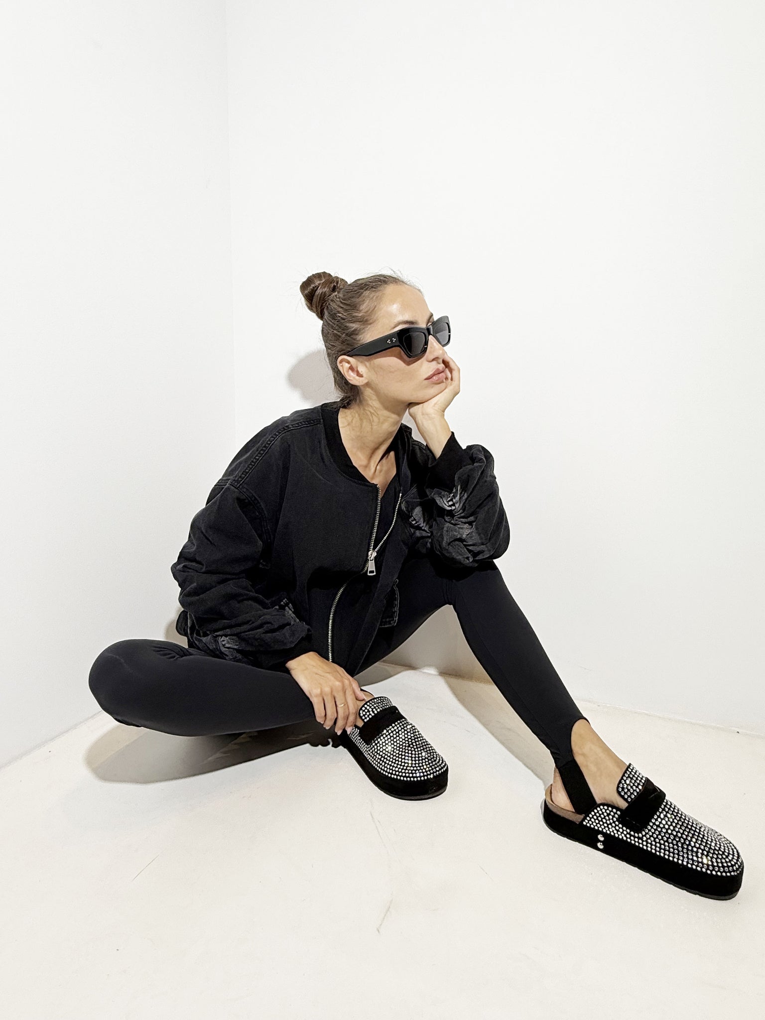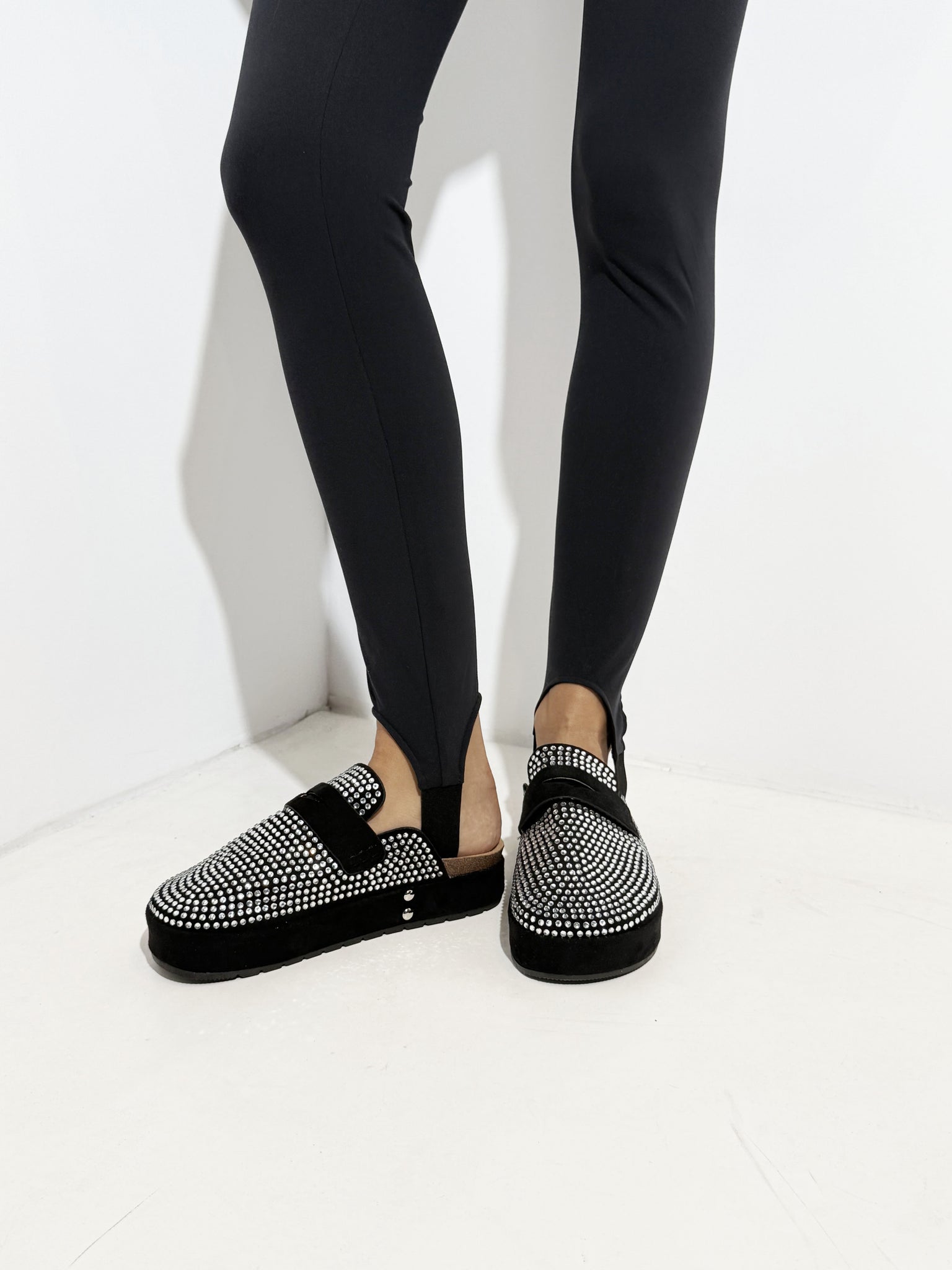 Black sequin slip-ons.