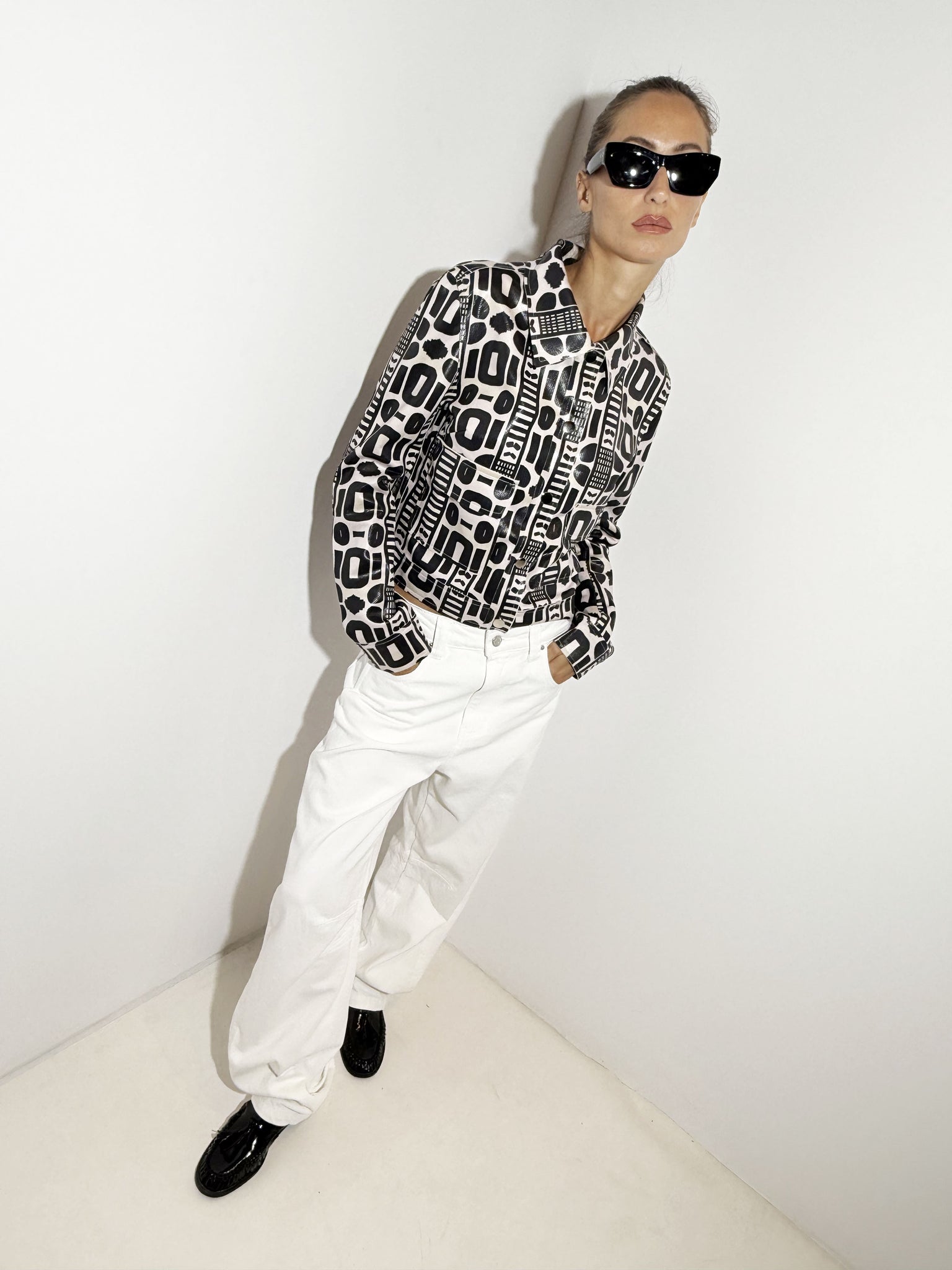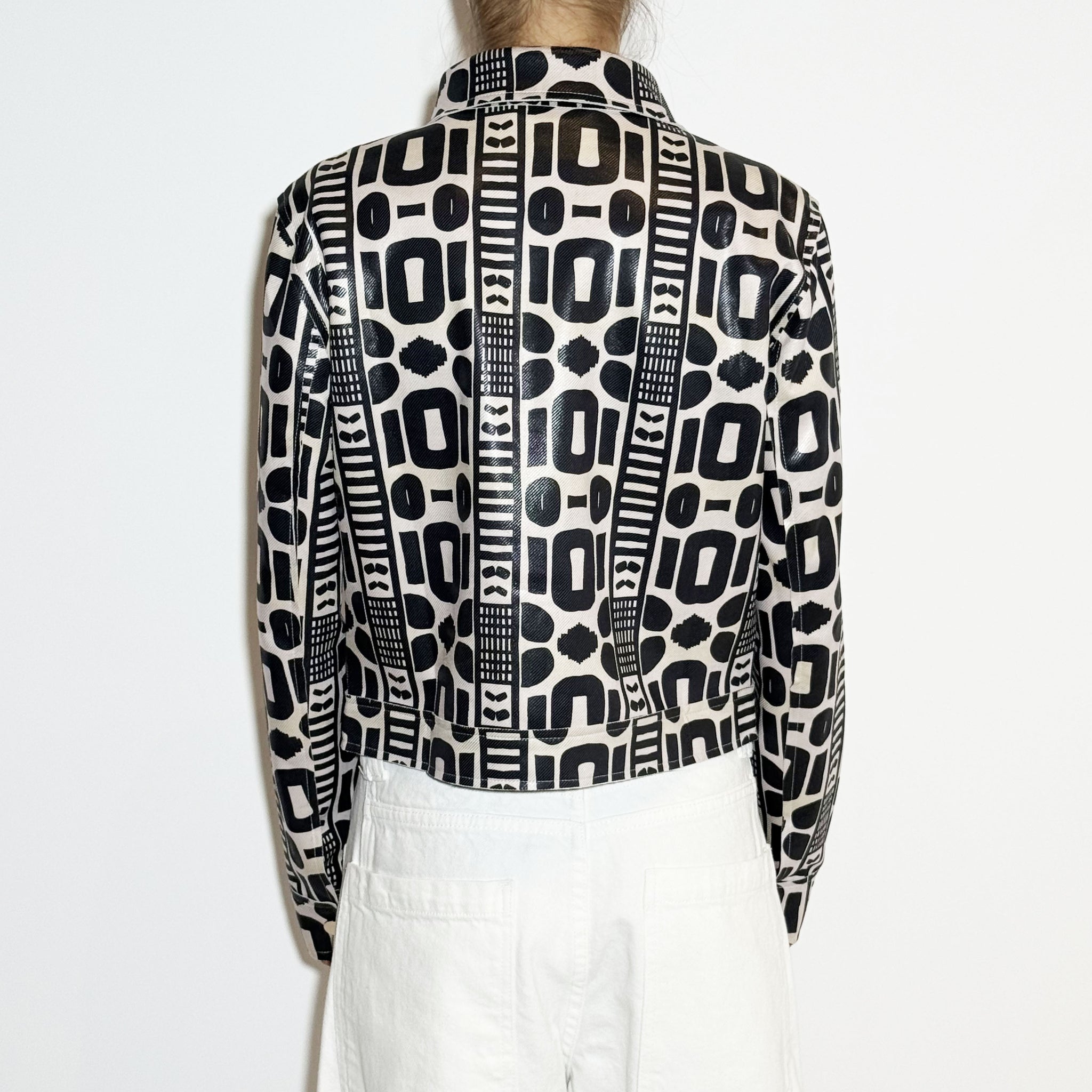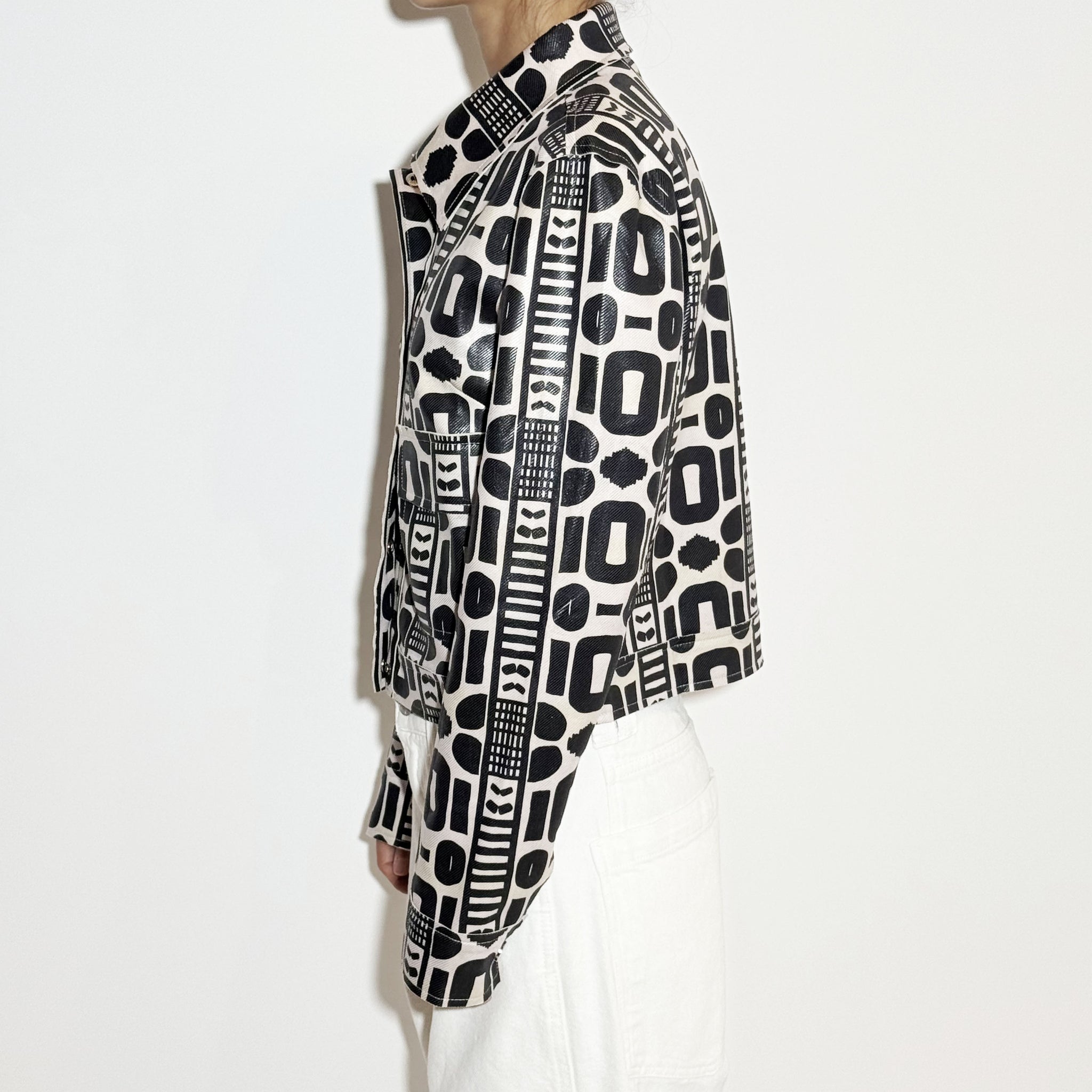 Jacket with drawing details and buttons.