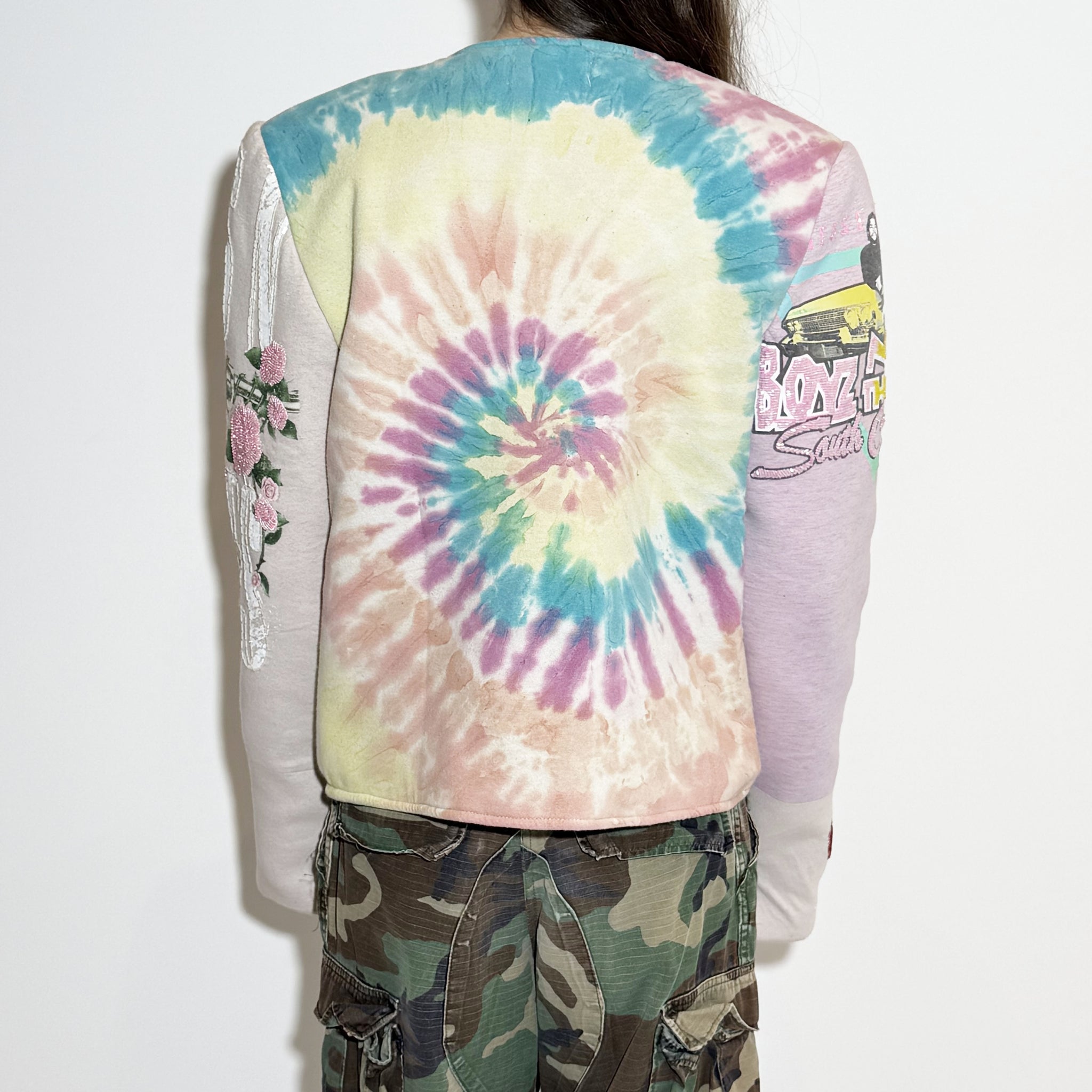 Reworked jacket with zip. Embroidery handmade and tie dye