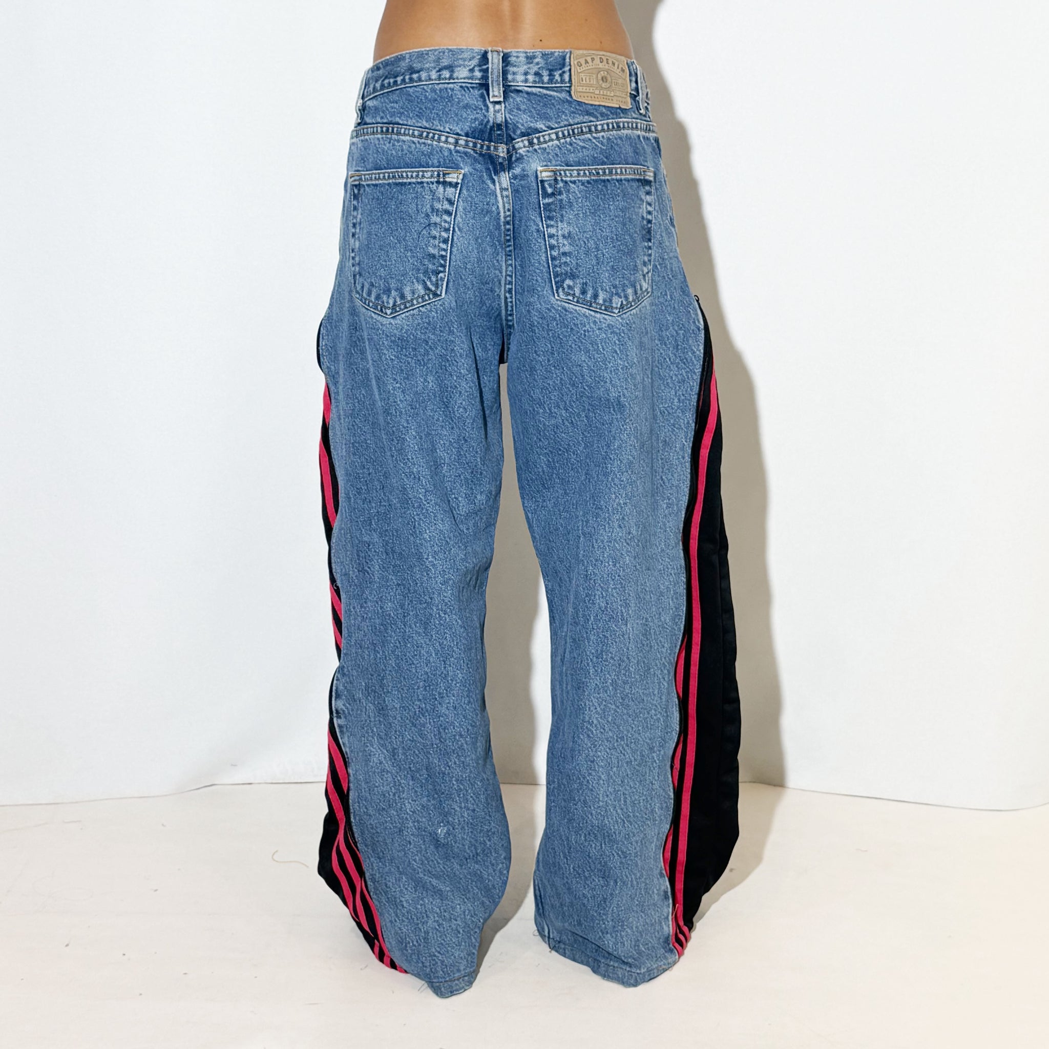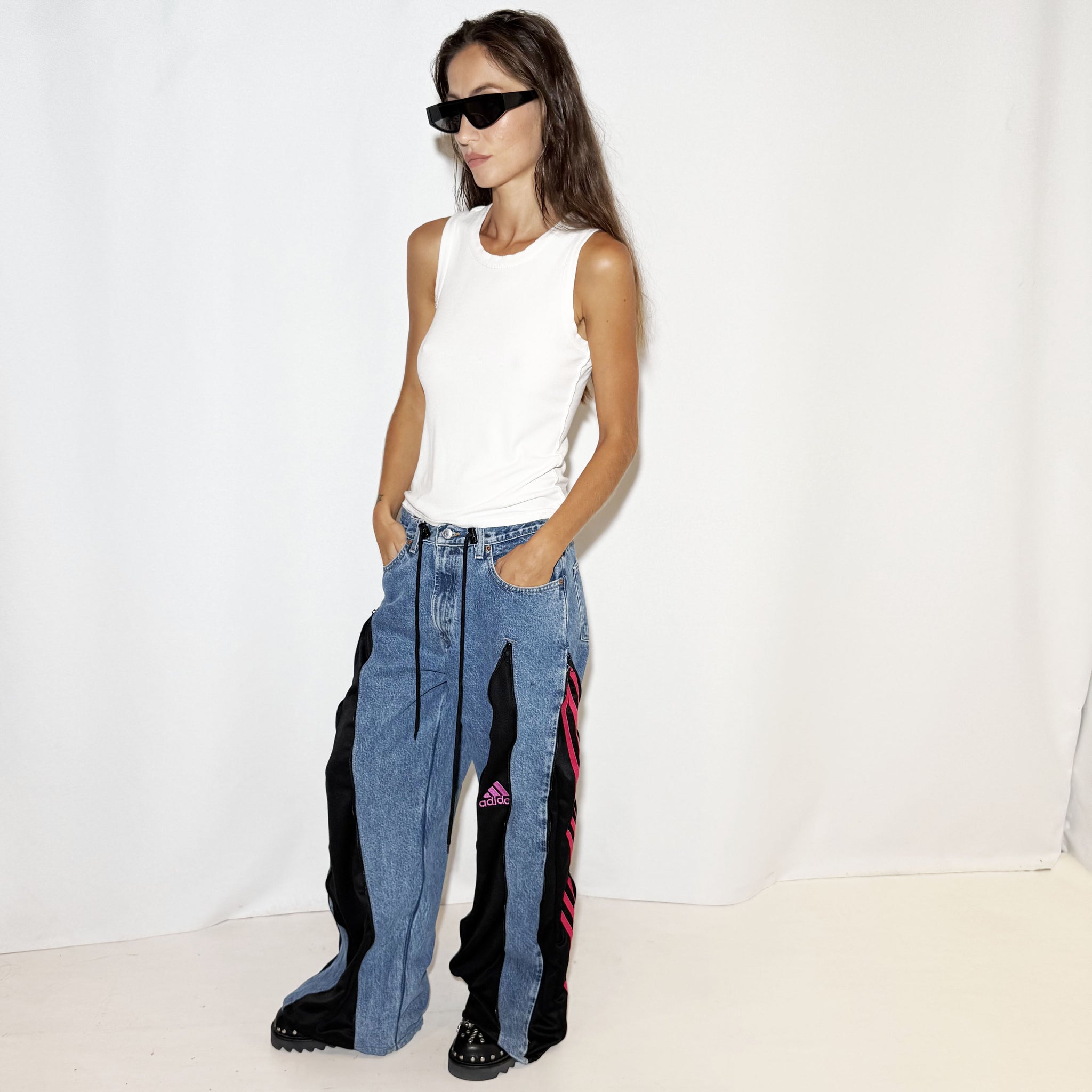 Reworked pants, vintage. Adjustable with an elastic waistband.