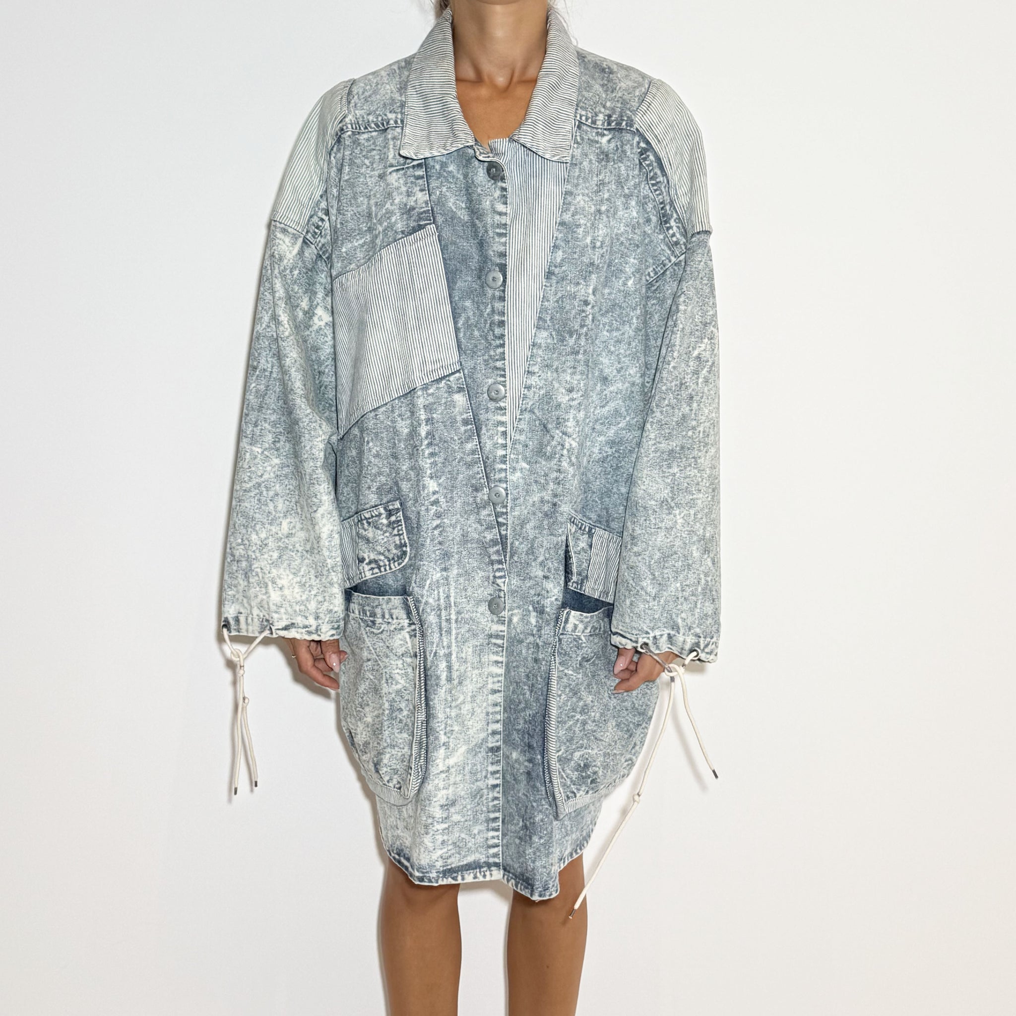 Oversized vintage long jean jacket, acid wash.